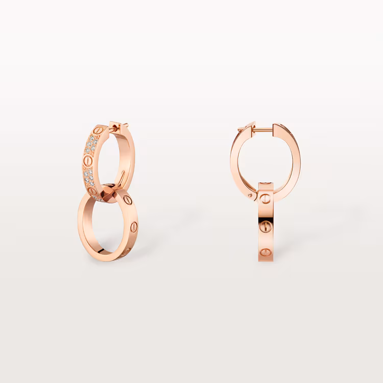 Cartier LOVE Earrings, Multi-wear, Half-Paved, 18K Rose Gold with Diamonds