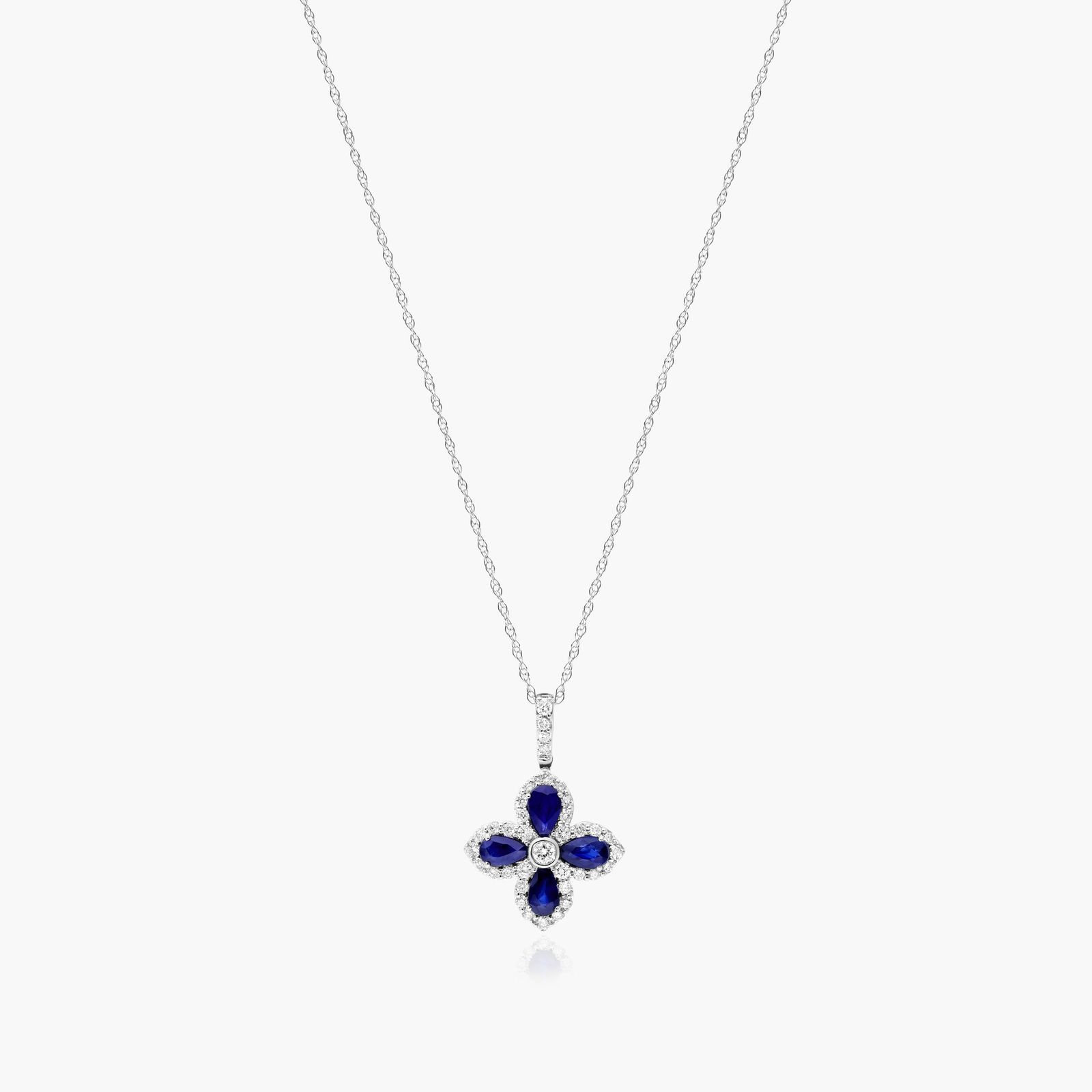 Product Name | Lily Motif Sapphire & Diamond Necklace in 14K White Gold |